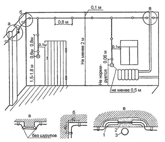 На рис. 2 приведен пример разметочных расстояний электропроводки на роликах.