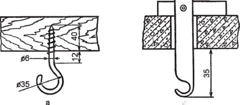 6 Рис. 19. Крюки для подвески светильников: а - на деревянных потолках; б - на пустотелых железобетонных плитах |