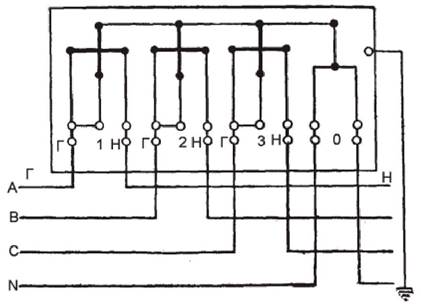 Нагрузка к счетчику подключается обязательно через устройство защиты. Защитные устройства применяют для того, чтобы при неисправности внутренней электропроводки или при аварийной перегрузке сети обеспечивалось автоматическое ее отключение от магистральной линии. С этой целью в цепях разных проводов сети устанавливают предохранители, автоматические выключатели или аппараты защитного отключения.