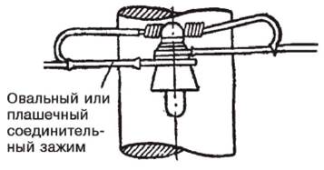 • в петлях анкерных опор - анкерными и ответвительными зажимами, овальными соединителями, монтируемыми методом скручивания, петлевыми плашечными и прессуемыми аппаратными зажимами (рис. 37, 38);
