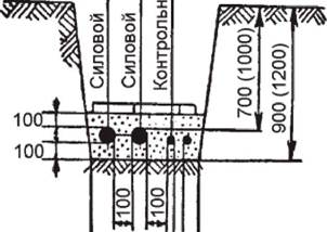 Рис. 40. Траншея для прокладки кабелей в земле |