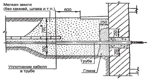 Рис. 43. Ввод кабеля из траншеи в здание 121 |