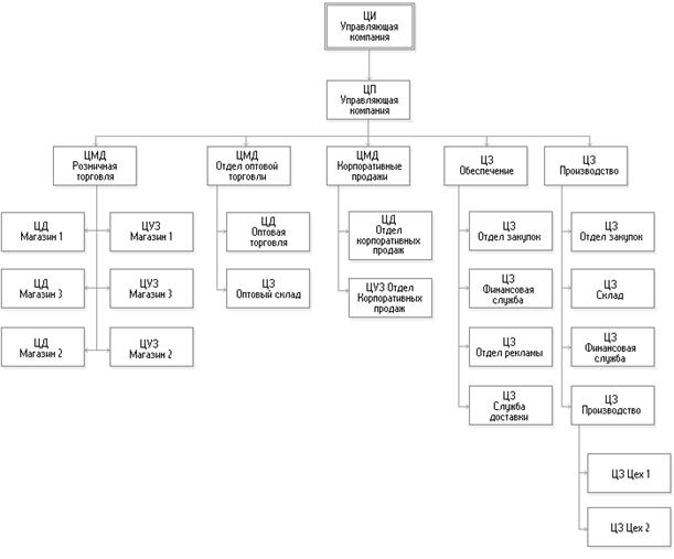 Сопоставив основные бизнес - процессы (бизнесы) предприятия с элементами организационной структуры, можно спроектировать финансовую структуру, основанную на принадлежности этих элементов.