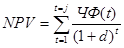 Чистая текущая стоимость проекта (NPV) - представляет собой суммарный доход от проекта, дисконтированный с учетом временной стоимости денег. Дисконтирование – это приведение разновременных временных показателей к одному моменту времени – точке приведения. Показатель NPV зависит от ставка дисконта и рассчитывается по формуле:
