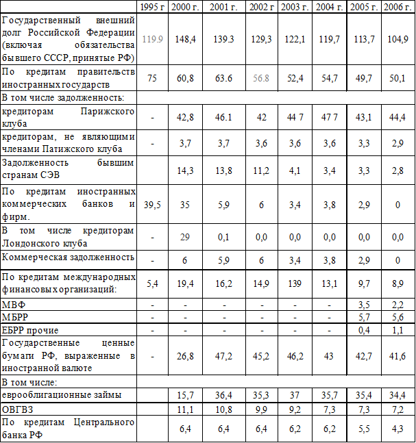 Приложение 1. Динамика структуры внешнего государственного долга РФ ( в млрд. долл.)