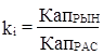 3. Для каждого предприятия рассчитывается коэффициент превышения (ki) расчетной капитализации над рыночной: