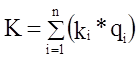 2. Для каждого предприятия рассчитывается удельный вес (qi) его валюты баланса в общей корзине: