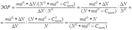 Эффект операционного рычага показывает, на сколько процентных пунктов увеличивается прибыль при изменении выручки на 1 процентный пункт, т.е.: