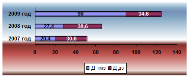 Рисунок 3.3.1 Длительность операционного цикла на SRL "BAKIS" за 2007 - 2009 года.