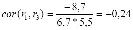 cov(r1,r3)=0,35*(12-4,3)*(4-3)+0,25*(-5-4,3)*(10-3)+