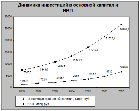Рисунок 3. 7 – Динамика инвестиций в основной капитал и ВВП