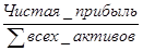 3. Коэффициент рентабельности активов (ROA) – отношение прибыли к сумме активов компании:
