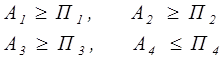 Сравнение групп активов с соответствующими группами пассивов (т.е. А1 с П1; А2 с П2; А3 с П3; А4 с П4) дает условия различных степеней ликвидности баланса.