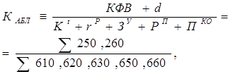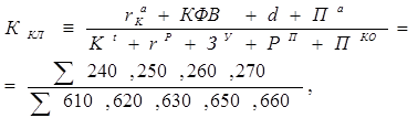 где КФВ – краткосрочные финансовые вложения, d – денежные средства, Кt – краткосрочные кредиты и займы, rp – краткосрочная кредиторская задолженность, ЗУ - задолженность участникам по выплате доходов, РП - резервы предстоящих расходов, ПКО – прочие краткосрочные обязательства, ∑- сумма строк баланса |
