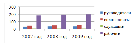 Рисунок 2 – Структура персонала по категориям занятости за 2007-2009 гг.