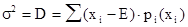 Дисперсия – средневзвешенное квадратов отклонений случайной величины от ее математического ожидания (т. е. отклонений действительных результатов от ожидаемых) –мера разброса:
