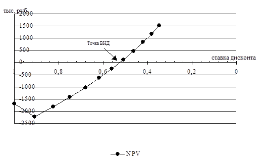 Внутренняя норма доходности определяется графически (см. Рисунок 4) на основании формулы. Изменения внутренней нормы доходности, так же можно отразить на диаграмме (см. рис.5):