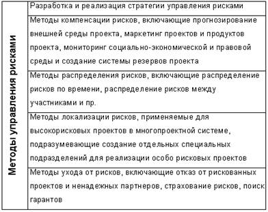 - качественный (описание всех предполагаемых рисков проекта, а также стоимостная оценка их последствий и мер по снижению);
