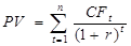 Текущую рыночную стоимость объекта оценки по методу дисконтирования денежных потоков рассчитывают суммированием ежегодных будущих денежных потоков прибыли, деленных на соответствующую ставку дисконта по формуле: