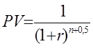 При проведении процедуры дисконтирования необходимо учитывать, как денежные потоки поступают во времени (в начале каждого периода, в конце каждого периода, равномерно в течение года).