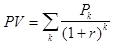 Допустим, делается прогноз, что инвестиция (IC) будет генерировать в течение n лет, годовые доходы в размере P1, P2, ., Рn. Общая накопленная величина дисконтированных доходов (PV) и чистый приведенный эффект (NPV) соответственно рассчитываются по формулам: