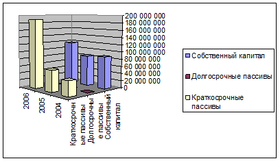 Пассивная часть баланса характеризуется преобладающим удельным весом собственного капитала до начала 2006года. После 2006 года общая структура пассива баланса изменилась, преобладающий удельный вес стал принадлежать краткосрочным пассивам.