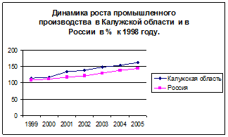 Реальный объём промышленного производства в 2005 г. превысил уровень предыдущего года на 5% (по России – 4%).