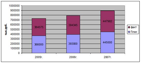 Эффективность финансового контроля – относительный показатель, показывающий отклонения между и фактическими и плановыми данными, что позволяет корректировать планы предприятия с учетом выявленных отклонений. Показателями эффективности финансового контроля являются число выявленных нарушений, величина выявленного перерасхода или экономии по всем расходам, процент выполнения плана. Отметим, что в настоящее время в ООО «Химпром» в силу того, что в состав предприятия входит большое количество подразделений производится составление доходов и расходов по каждой службе, значения бюджетов затем суммируются и учитываются в сводном бюджете. Отметим, что сводный финансовый бюджет в ОАО «Химпром» за 2007 г. в части доходов перевыполнен на 14,4 %, по расходам на 7,9 %.