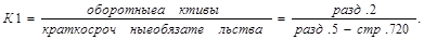 1. Коэффициент текущей ликвидности (К1) характеризует степень покрытия краткосрочных обязательств оборотными активами организации. Этот коэффициент рассчитывается следующим образом: