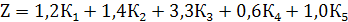 На основе обследований предприятий – банкротов Э.Альтман рассчитал коэффициенты значимости отдельных факторов в интегральной оценке вероятности банкротства.