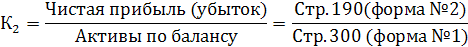 К2 – отношение нераспределенной прибыли, резервов и фондов к сумме всех активов;