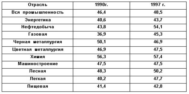 Как видно из представленной таблицы, износ основных средств производства с 1990 по 1997 гг. только увеличивался. Увеличение по всей российской промышленности составило 2,2 %. Из-за отсутствия серьезных инвестиций, направленных на обновление основных производственных фондов, затраты на производство продукции с использованием таких основных фондов имеют тенденцию к возрастанию. Продукция, которая выпускается нашими предприятиями, не отличается высокой конкурентоспособностью, поскольку при ее производстве не используются новые технологии и новое современное оборудование. [8, с.24]
