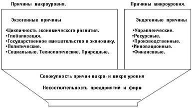 Микроорганизация — организация, исходящая от части, макроорганизация — от целого. На микроуровне можно выделить следующие характерные причины несостоятельности (рис. 5).