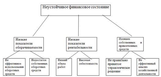 Итак, для того чтобы разработать мероприятия по укреплению финансового состояния, нам необходимо определить причины финансовой неустойчивости предприятия. Для этого составим дерево проблем.
