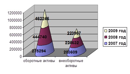 Рисунок 1 – оборотные и внеоборотные активы ООО «КЭСП» за 2007–2009 гг.