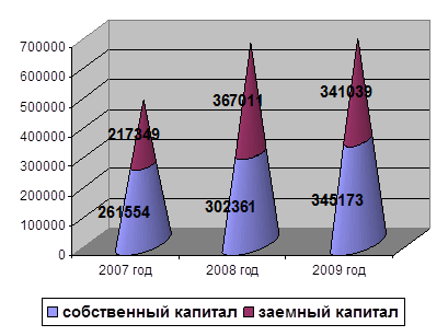 Рисунок 2 – собственный и заемный капитал ООО «КЭСП» за 2007–2009 гг.