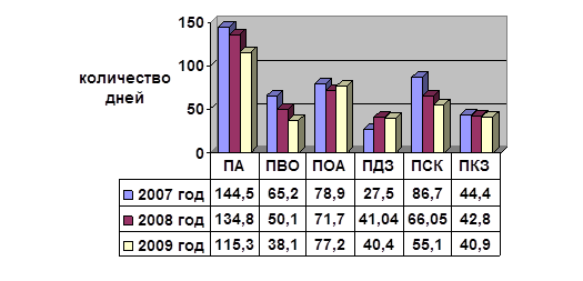 Итак, увеличение длительности оборота оборотных средств на 7 дней и соответственное уменьшение количества оборотов за период с 2007 по 2008 год на 0,4, говорит о том, что предприятию требуется привлечение дополнительного капитала для продолжения производственно-хозяйственной деятельности. Как мы видим, предприятие добилось сокращения продолжительности одного оборота по оборотным средствам. Фактически один оборот был осуществлен за 77,2 дней в 2009 году, что позволило увеличить количество оборотов на 0,36. В результате ускорения оборачиваемости у предприятия имеется возможность добиться одинаковых результатов при меньшем размере оборотных средств. Таким образом, происходит высвобождение оборотных средств за счет ускорения их оборачиваемости.