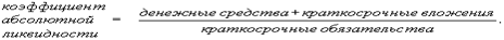 1. Коэффициент абсолютной ликвидности рассчитывают как отношение денежных средств и быстрореализуемых краткосрочных ценных бумаг к текущей – краткосрочной задолженности