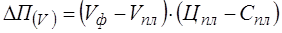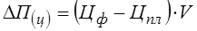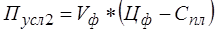 - второй условный показатель, отражающий величину прибыли при фактическом объеме реализации и фактической цене, но при плановой себестоимости продукции;