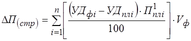 Где УДф i, УДпл i -соответственно фактический и плановый удельный вес i-го вида продукции в общем объеме реализации, %;