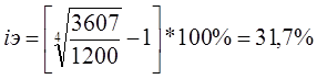 Определим вначале доходность инвестиций без учета дисконтирования. Если получаемые денежные поступления не реинвестируются, то доходность инвестиций i3 определяется по формуле эффективной ставки сложных процентов:
