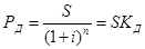 где Рд — величина дисконтированного значения будущей суммы S с процентами; Кл — коэффициент дисконтирования (приведения).