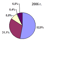 Чтобы наглядно изобразить изменение структуры оборотов по отраслям Кизнерского райпо за 2005 – 2007 гг. построим диаграмму (см. рисунок 5).