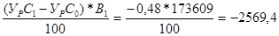 - снижение уровня себестоимости товаров на 0,48 % увеличило прибыль на 2569,4 тыс.руб.;