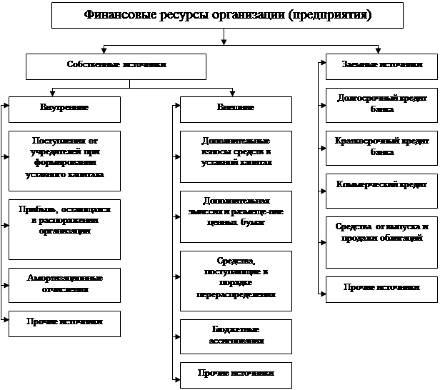 По источникам образования финансовые ресурсы подразделяются на собственные (внутренние) и привлеченные на разных условиях (внешний) мобилизуемые на финансовом рынке и поступающие в порядке перераспределения рисунок 2.