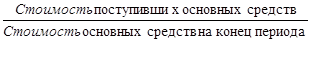 Важное значение в системе показателей оценки движения основных фондов имеет и характеристика интенсивности их обновления. Для этого рассчитывают коэффициент обновления основных фондов за определенный период: