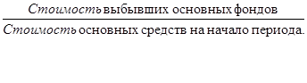 Процесс обновления основных фондов предполагает изучить и характер их выбытия. Оценку этого процесса проводят по коэффициенту выбытия основных фондов за определенный период: