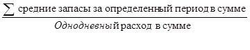Для оценки управления запасами исчисляют их оборачиваемость в днях и разах по формуле: