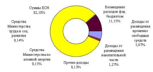 Федеральным законом от 23 декабря 2003 года № 175-ФЗ «О бюджете Пенсионного фонда РФ на 2004 год» утвержден бюджет ПФР, по доходам в сумме 1000316,63 млн. руб., из них 916649,75 млн. руб. в части, не связанной с обязательным накопительным финансирование трудовых пенсий, и по расходам в сумме 946640,16 млн. руб., из них 936398,4 млн. руб. в части, не связанной с обязательным накопительным финансированием трудовых пенсий. На покрытие дефицита фонда (не связанного с обязательным накопительным финансированием трудовых пенсий), направляются средства резерва бюджета Фонда предусмотренного в сумме 19748,7 млн. руб. Таким образом, по данным таблицы 2.6 «Структура доходов бюджета Пенсионного фонда РФ в 2004 году» (см. приложение Н) дефицит бюджета ПФР в 2003 году составил 2,15 %.