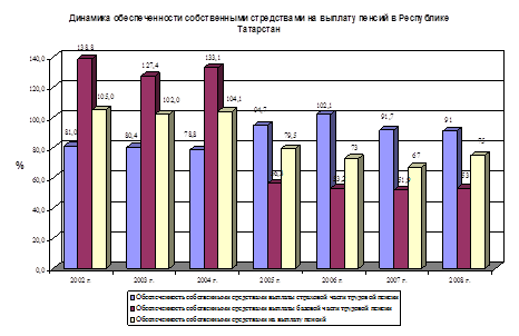 Рис. 2.1.3. Динамика обеспеченности собственными средствами на выплату пенсий в Республике Татарстан
